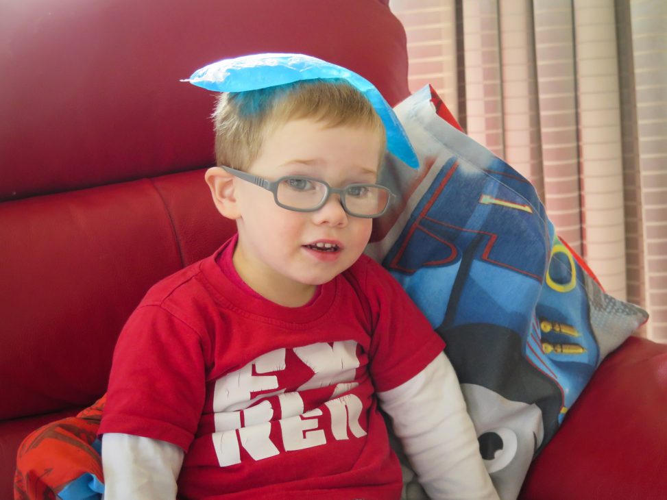 Definitely needs a cold pack …………….. but we had to laugh as LJ knew exactly where to find the pack and wasted no time bringing it to G to put on the sore spot.