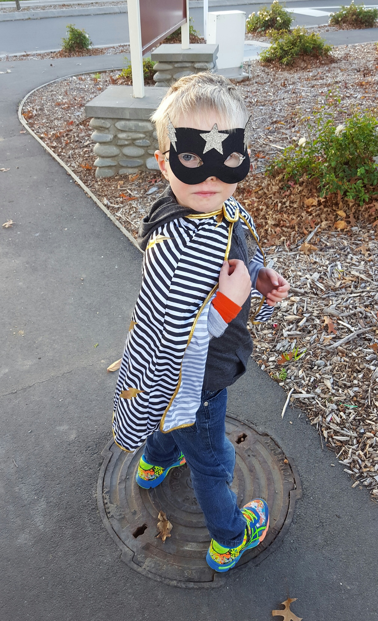 To celebrate him doing so well, I suggested going for a walk to buy an ice cream. Instead of grabbing his jacket, CJ opted for his Flash Batman!