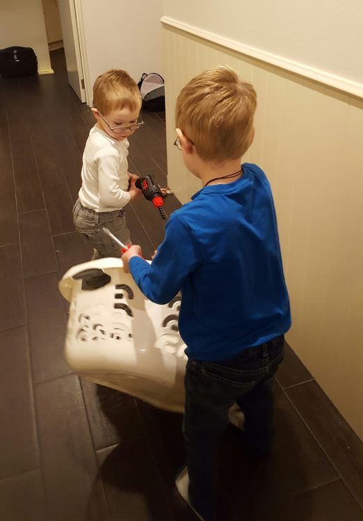 Sometimes they manage to play very well together – today it was fixing the boat!