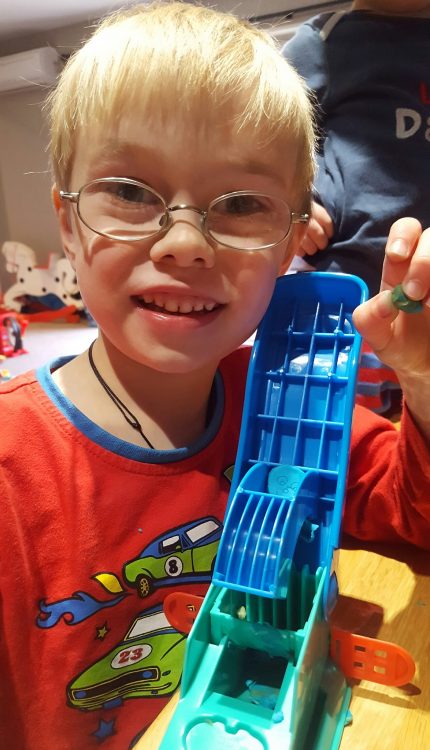 CJ was busy making smiley faces – because he was happy to be going to school.