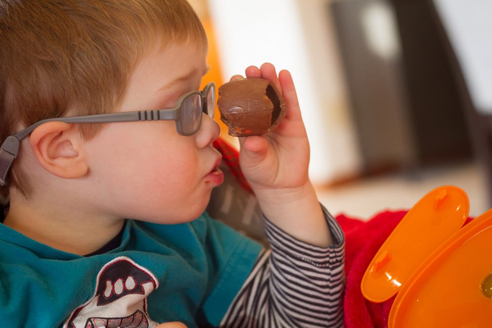 ………… what else would a two year old do with a chocolate egg??