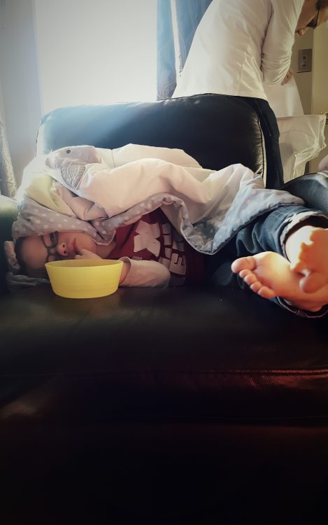 But by late afternoon, both boys just wanted to sit and relax – so we found a movie and a snack for them. LJ thought the setting sun was a little bright, however it didn’t take him long to find a solution!