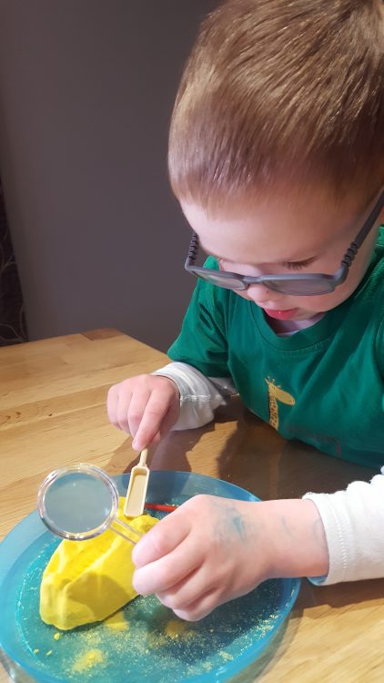I did have one surprise for them, a sand dinosaur head! We then spent ages slowly chipping and brushing away the sand to find the hidden fossils inside!