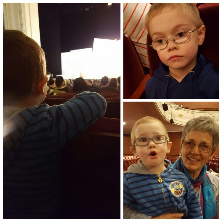 LJ was fascinated by all the different puppets and stage props. But this didn’t mean he would sit still. He was up and down, leaning on the backs of the chair, sitting on his seat, leaning forward and then leaning on us – all without taking his eyes off the stage.