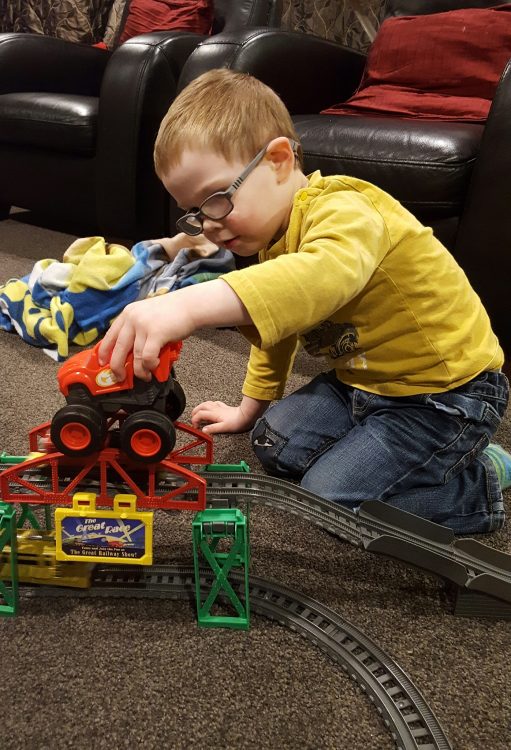 This boy loves his Blaze monster truck! He’s even found a way to use it when playing with the trains!