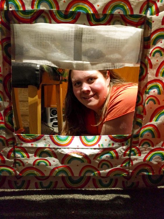 S1 (with my mums help) has made a play hut table cloth to go over our table for the kids to play under.