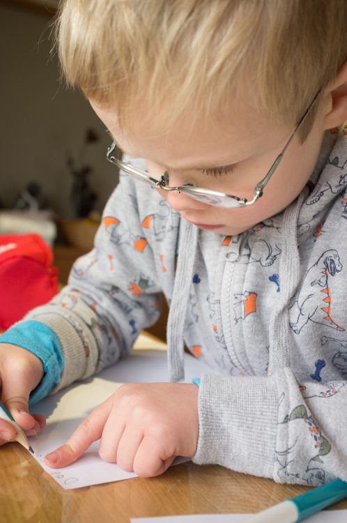 He loves nothing more than practising his new skills like writing. Currently he is practising finger spaces between words.