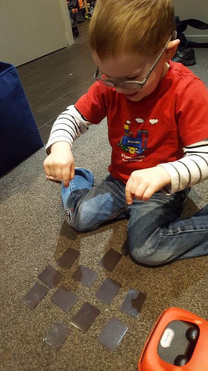 Tonight LJ had a puzzle – what could be make out of upside down fridge magnets…
