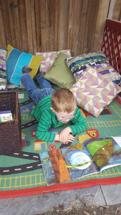 However, today he spotted something in the outside reading area – a copy of a favourite book…