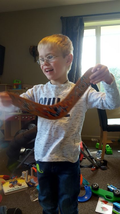 CJ loved his boomerang and soft toy dingo. He and S2 went down to the park for a few throws of the boomerang, they had it turning around but not making it the full way back.