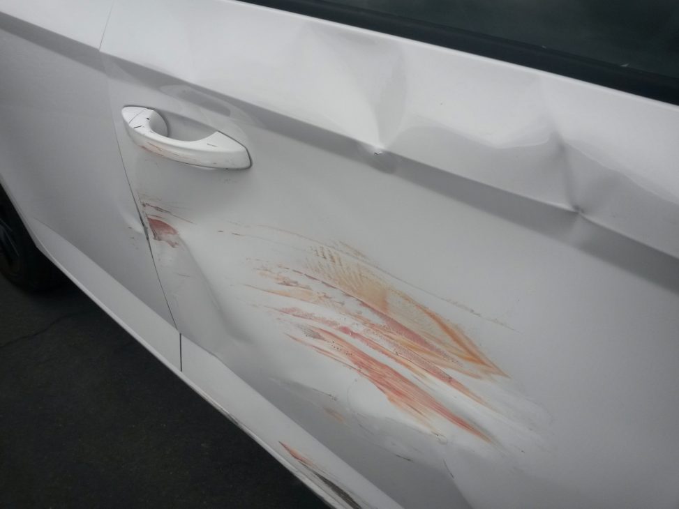 Waiting patiently for the road to clear so I could drive out of a supermarket carpark when a car turned right and into the path of a car driving straight ahead. Â Squealing tyres, a big crash and lots of smoke right in front of my little car …………….. then I sat and watched one car spin around and slide straight into my driver’s door!!