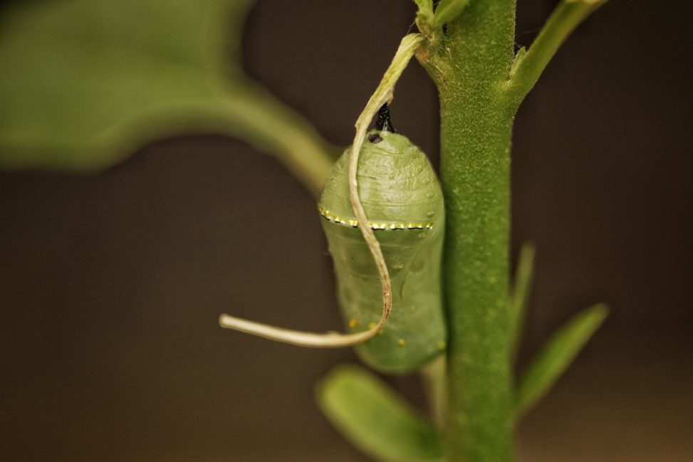 This crysalis is in a swan plant near our back door so I’m hoping to see the butterfly emerge …….. if the leaf it is attached to survives! It was a healthy leaf when the crysalis started 10 days ago, but is looking a bit dead now. Not sure what happens if the leaf falls off the plant.