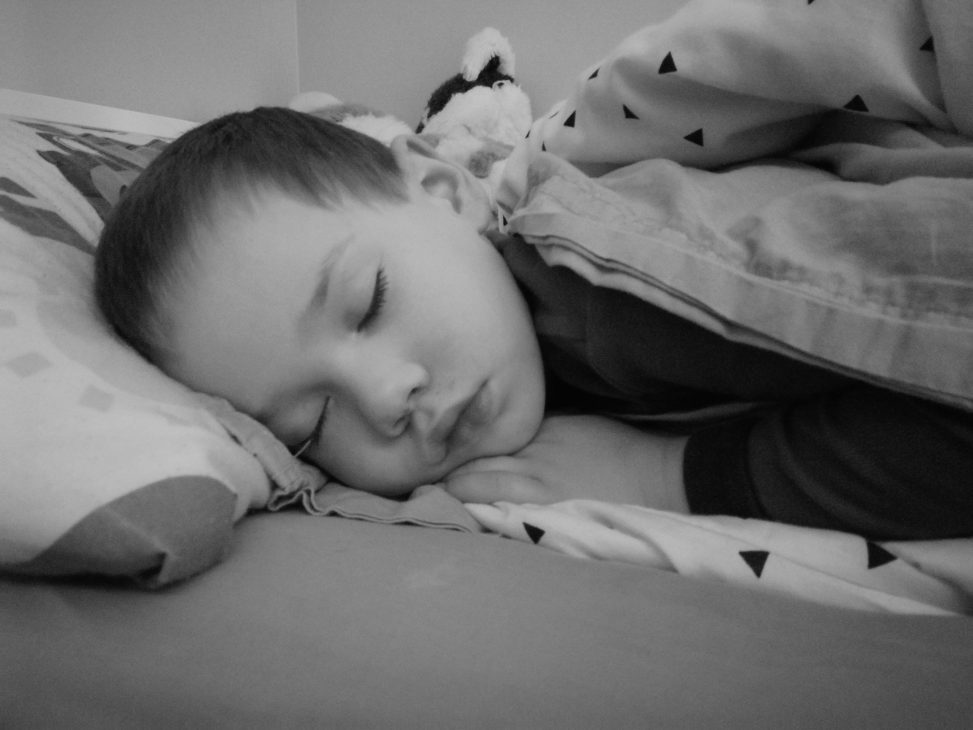I check him every night last thing before bed. I almost always have to put his covers back on, and he almost always wakes. He’s such a soft sleeper.