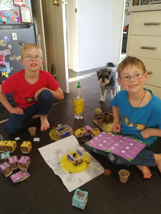 The boys were planting seeds today for spring time.