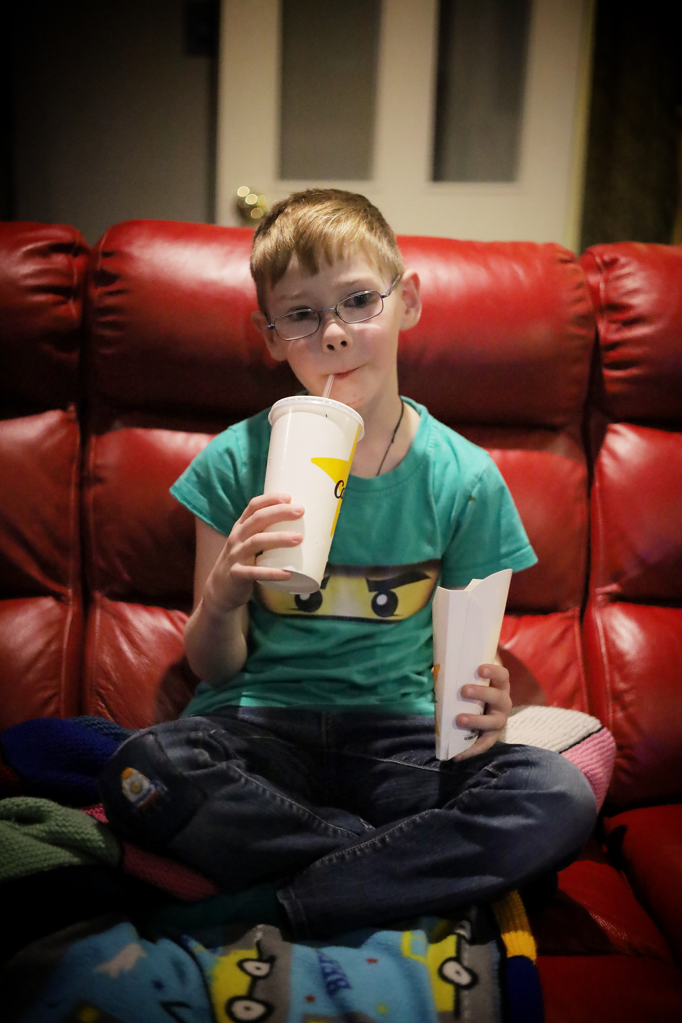 Poor LJ, he doesn’t get chips often as half the household is allergic to potato. He also loves lemonaid, but we normally give him nothing but water.