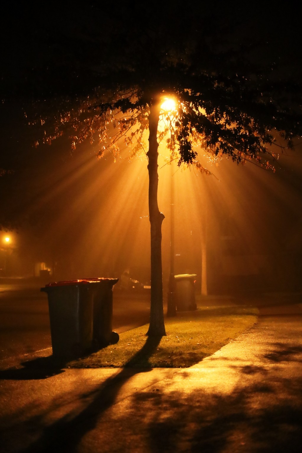 As I hit the road, the fog clouded in. The street lights glowing. Headlights pounding the road ahead.