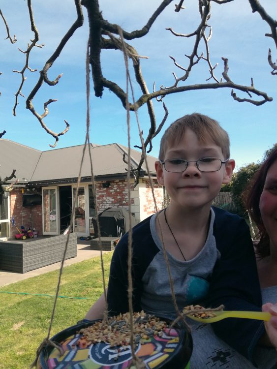 LJ made a bird feeder as a home school project.
