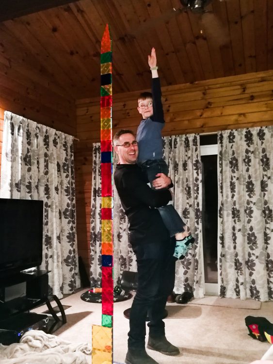 Sure enough, within minutes of arriving tonight, LJ had them out and building. Together we managed to make our talest creation yet.