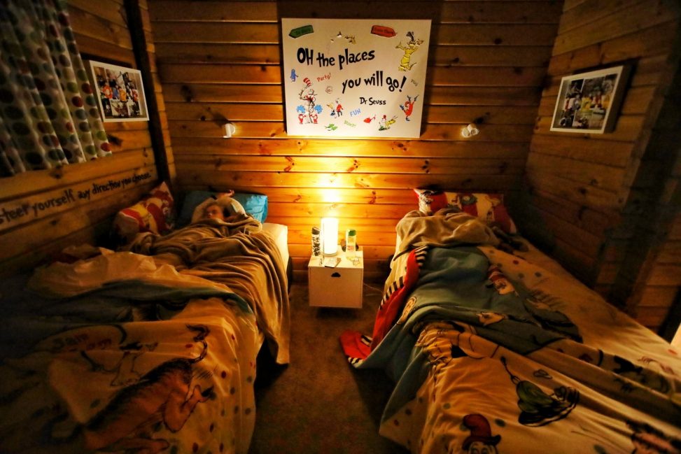 Two boys tucked safely into bed for the night.