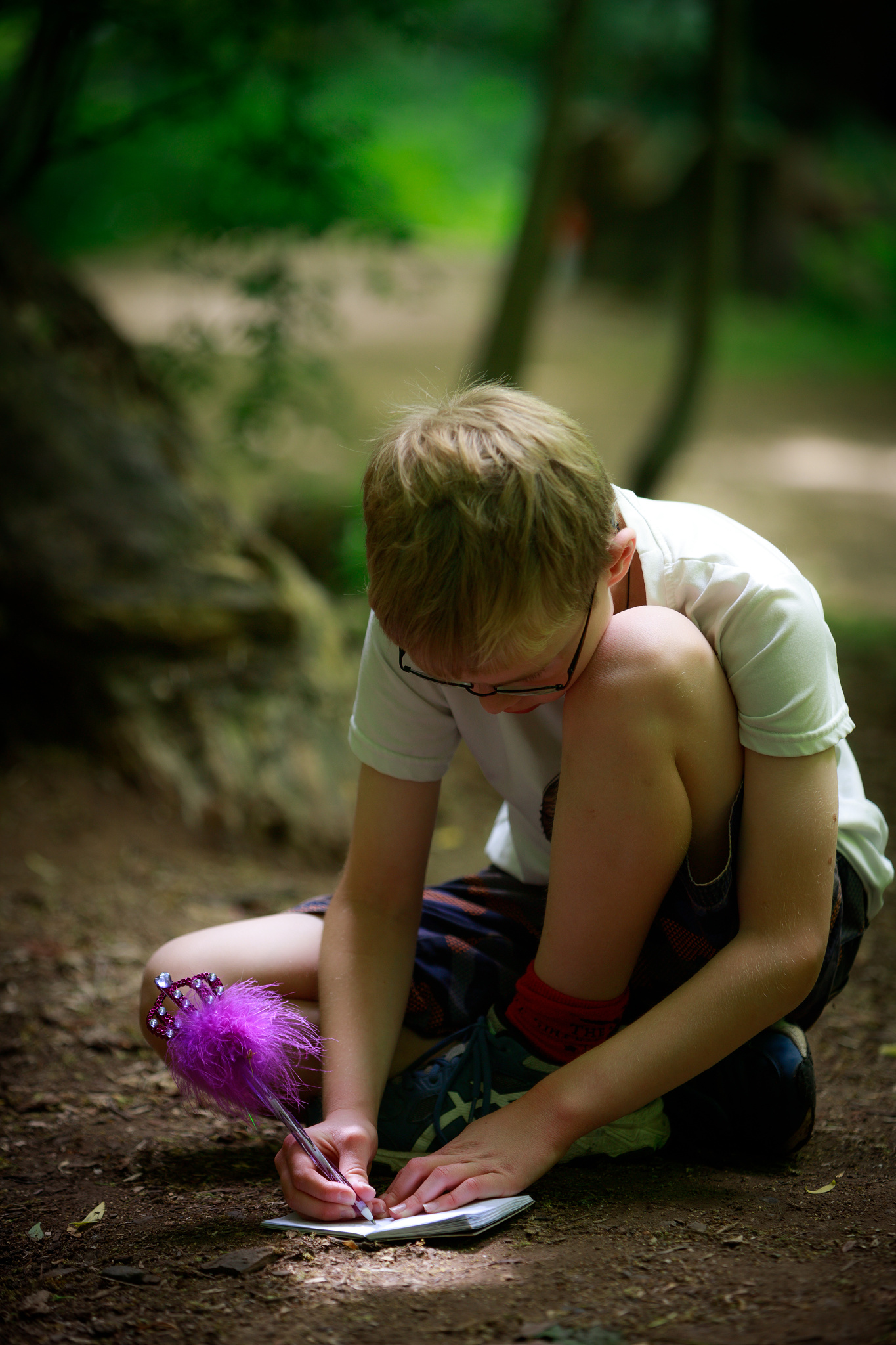 Walking in the forest through a patch of fairy doors, and we opened one to find a notebook and a pen.