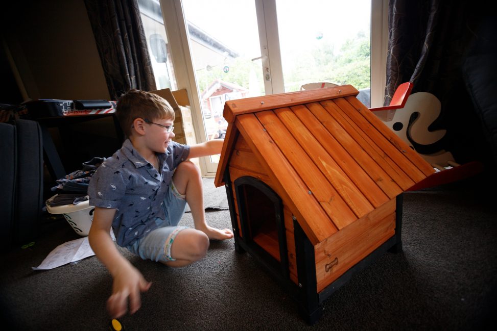 I told LJ we’d build the kitset doghouse when I got out of the shower. Imagine my surprise to come back to find he’d done it without me.